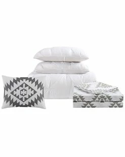 Truly Soft Printed Windowpane White Grey 3Pc Comforter Set Home