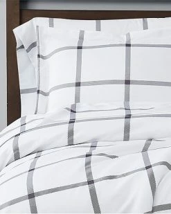 Truly Soft Printed Windowpane White Charcoal 3Pc Duvet Cover Set Home