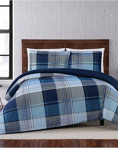 - Design details: a modern, geometric plaid is the focus of this bed. the printed texture emulates a yarn dyed plaid for added depth. the pattern is dominated by blue and gray shades with ivory tones mixed into the pallet. items feature truly soft face and back material