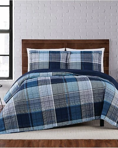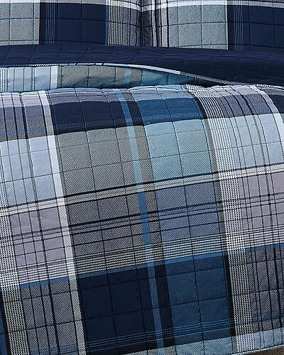 - Design details: a modern, geometric plaid is the focus of this bed. the printed texture emulates a yarn dyed plaid for added depth. the pattern is dominated by blue and gray shades with ivory tones mixed into the pallet. items feature truly soft face and back material