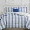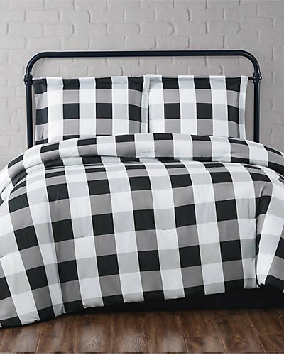 - This large buffalo check print features a white background in an intersecting pattern on the face. The reverse is a solid color in 100% microfiber polyester.Bedding sets come with a comforter or duvet and one sham for twin and two shams for all other sizes. This item can be machine washed but please be sure to use properly sized machinery to care for the item.