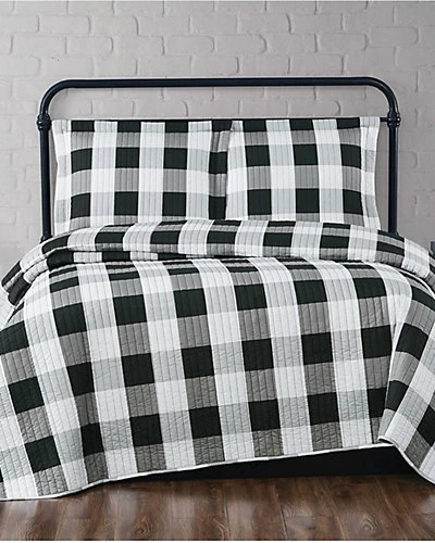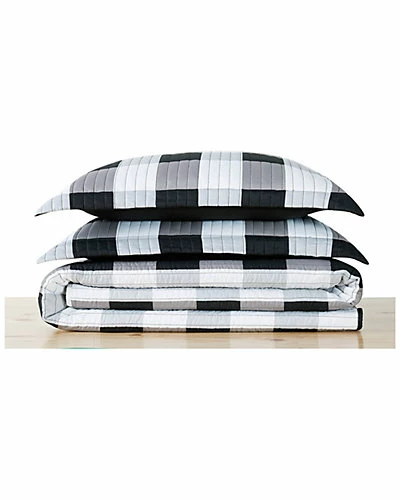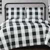 - This large buffalo check print features a white background in an intersecting pattern on the face. The reverse is a solid color in 100% microfiber polyester.Bedding sets come with a comforter or duvet and one sham for twin and two shams for all other sizes. This item can be machine washed but please be sure to use properly sized machinery to care for the item.