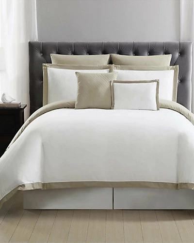 - King: comforter (104in x 90in), two pillow shams (20in x 36in), two European shams (26in x 26, two decorative pillows (12in x 16, 16in x 16in)